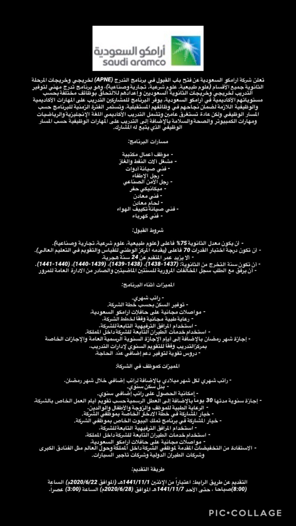 Mohammed Alshahrani On Twitter شركة أرامكو تعلن التسجيل ببرنامج التدرج لخريجي المرحلة الثانوية Https T Co Jf0k8fdqyi يشكرون اي وظيفه